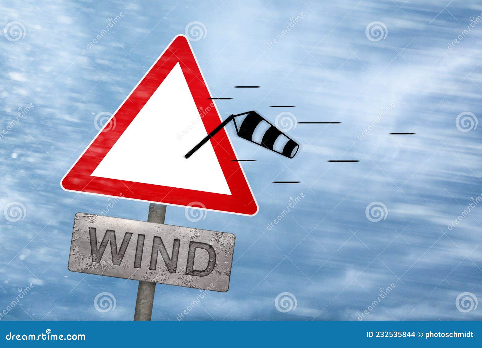 Wind Warning Sign Getting Blown Away By A Storm Stock Photo Image Of Wind Traffic 232535844